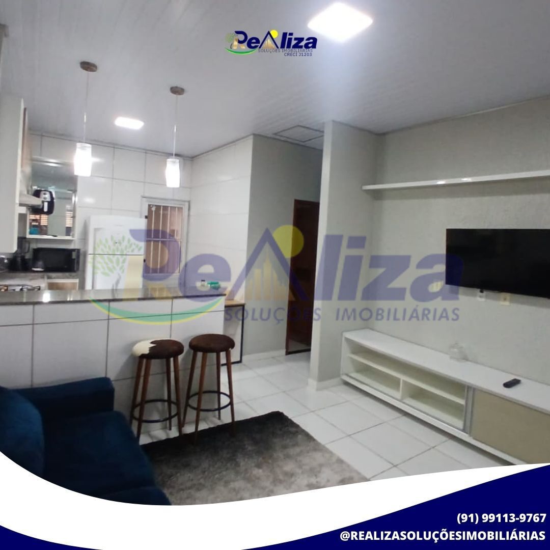 Casa Mobiliada: 2 quartos, cozinha americana, banheiro social, área de serviços, garagem, portão eletrônico e cerca elétrica.